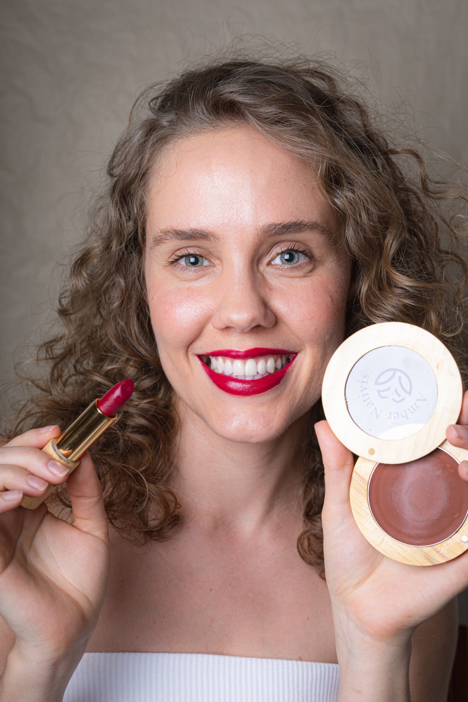 Mais do que cor, o Batom Rubi oferece cuidado. Enriquecido com manteigas e óleos naturais, ele hidrata profundamente, garantindo conforto e maciez por horas. Sua fórmula orgânica respeita a saúde dos lábios, proporcionando uma experiência de beleza segura e luxuosa. Com longa duração, ele mantém seu brilho vibrante por mais tempo, permitindo que você brilhe sem preocupações.